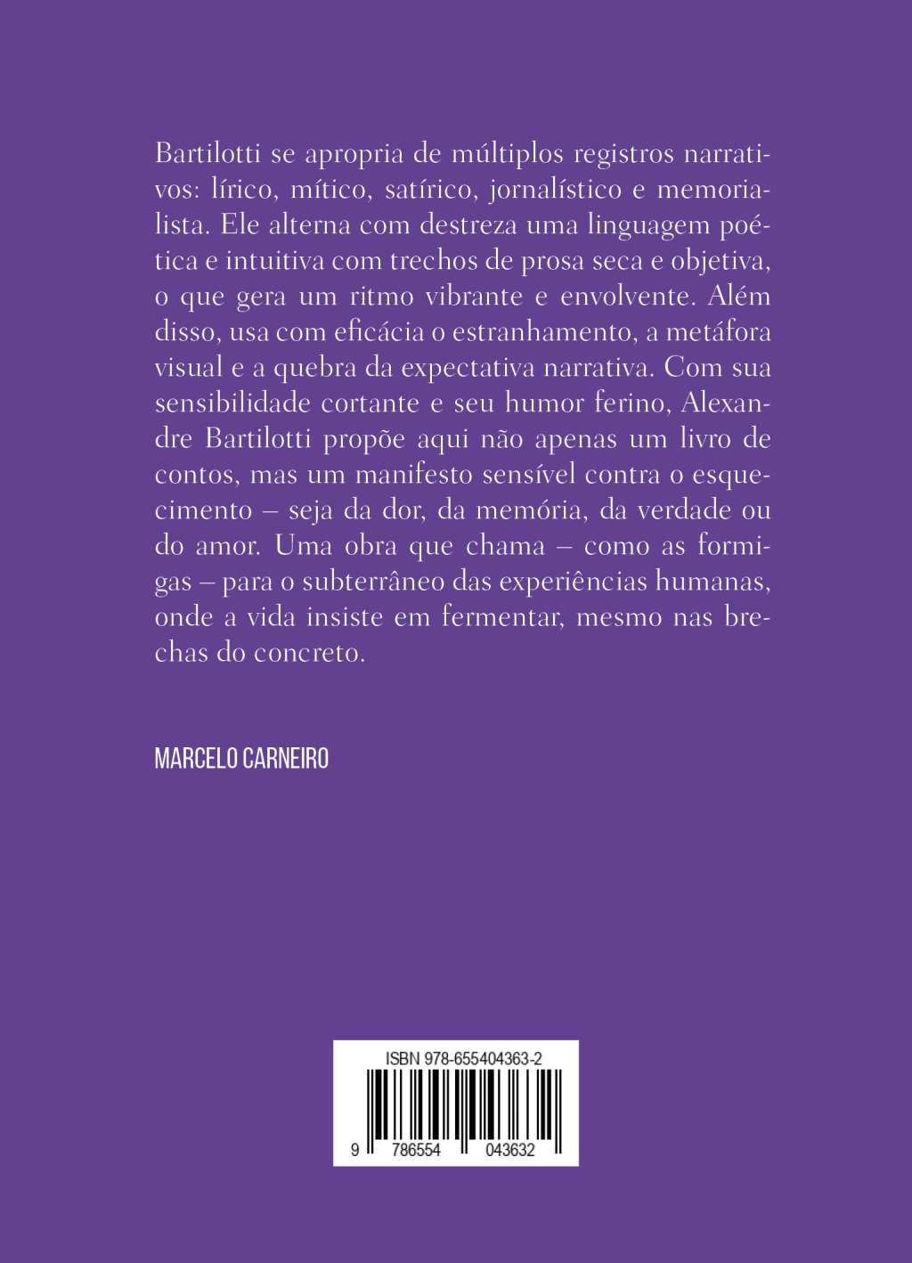 "O Chamado das Formigas," de Alexandre Bartilotti, utiliza o absurdo e o realismo fantástico para costurar uma crítica social e existencial. A obra é um quebra-cabeça que aborda temas como as forças cósmicas, o eterno retorno e a sociedade de consumo.